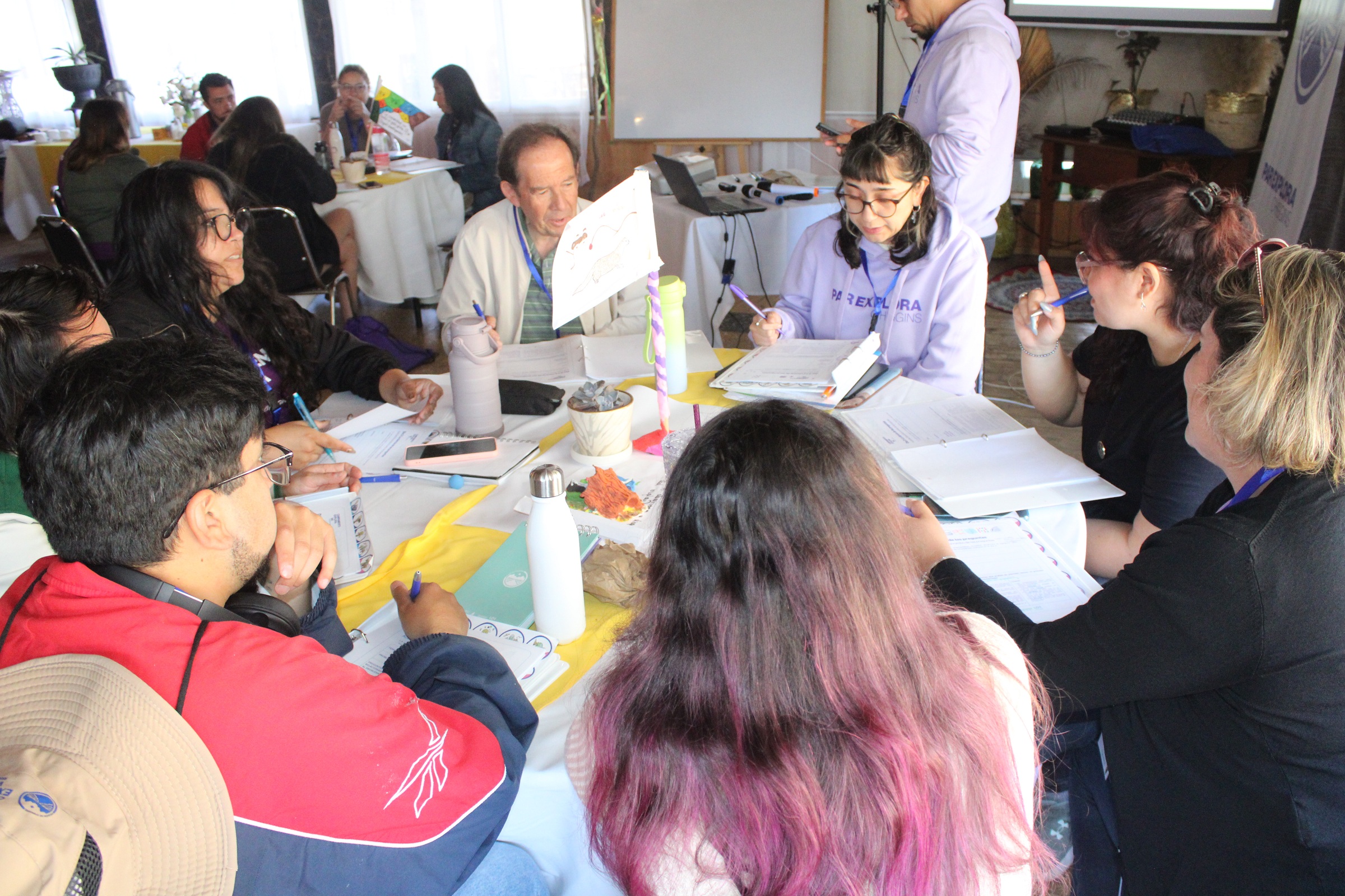 Durante el campamento, las y los docentes trabajaron organizados en cinco equipos ?Loica, Gato Güiña, Quique, Tagua y Tricahue? inspirados en fauna local, generando identidad territorial y sentido de comunidad. El proceso fue guiado por académicos y académicas de la UOH, junto al equipo del PAR Explora O?Higgins, y contó además con charlas y talleres de investigadoras e investigadores locales, así como con salidas pedagógicas al Humedal Petrel.