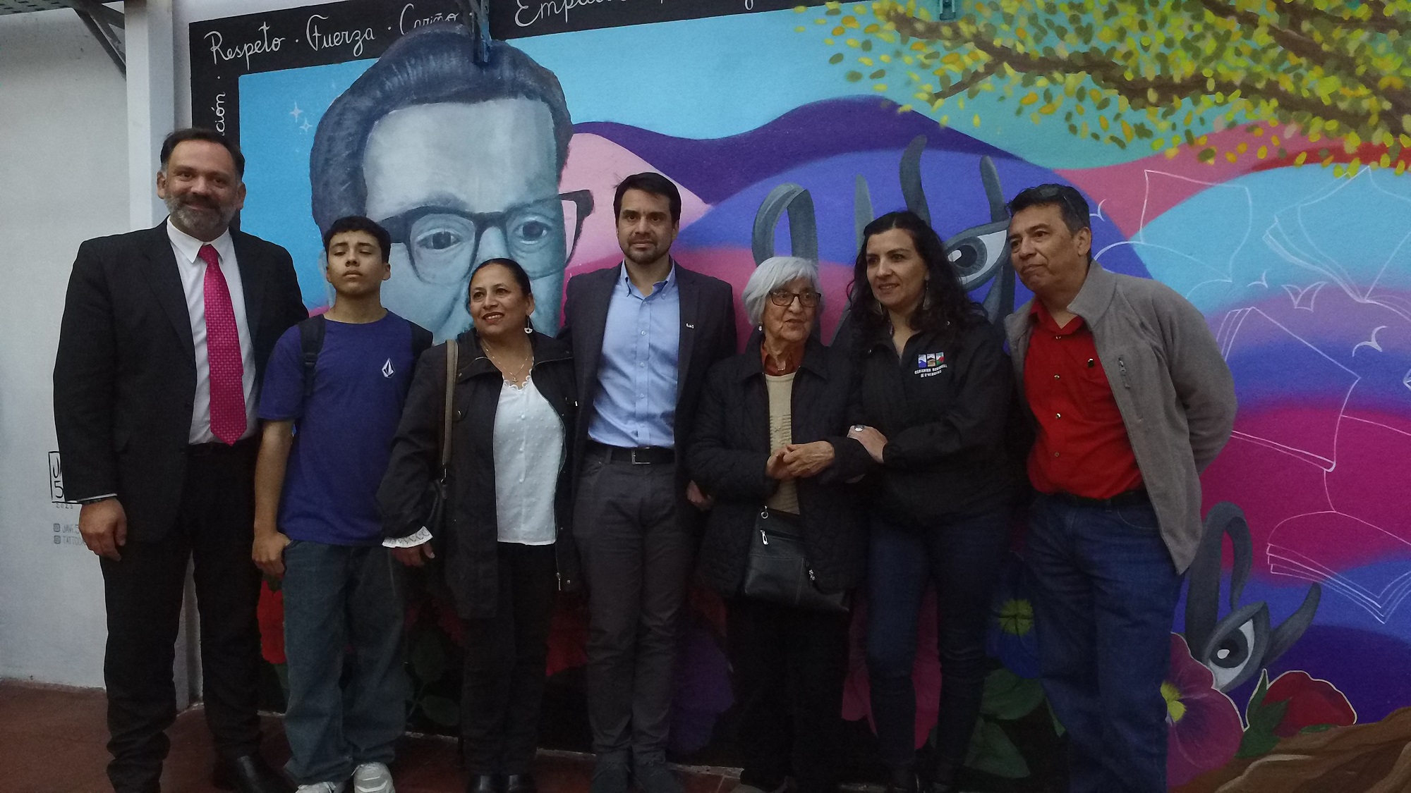 Para el director del colegio, Javier Jara, este mural representa una obra indeleble en homenaje al profesor Luis Almonacid, ?símbolo de dedicación y pasión por la enseñanza?, con lo cual se resalta el valor de la educación y la preservación de la memoria en las futuras generaciones.