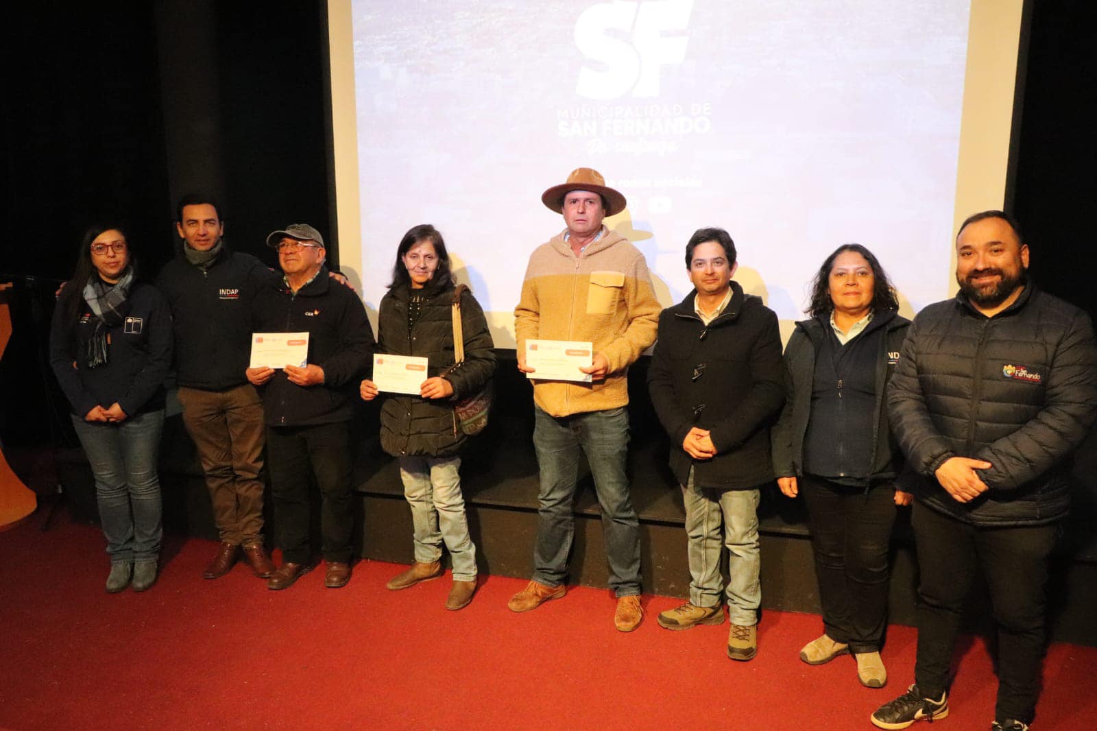 La ceremonia de entrega de incentivos IFP contó con la presencia de la delegada presidencial de Colchagua, Marta Pizarro Inzunza; el diputado Félix Bugueño, el Seremi de Agricultura, Cristian Silva; el director regional de INDAP, Braulio Moreno Sánchez; Sebastián Osorio, en representación del alcalde de San Fernando; y otras autoridades.