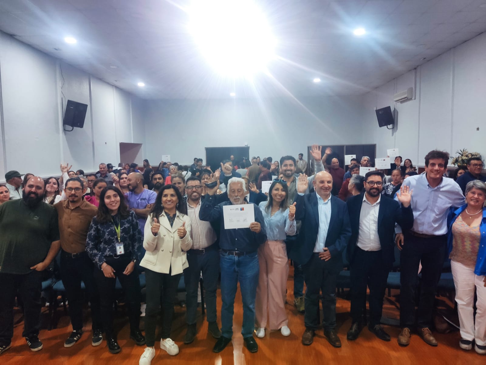 23 de abril 2024.- Con un salón O´Higgins repleto se realizó la ceremonia del Programa Recambio de Calefactores, de la línea de Pellet y Aire Acondicionado 2024, participando más de 150 beneficiarias y beneficiarios del Programa, quienes recibieron un reconocimiento por su aporte en la descontaminación del aire al recambiar sus calefactores a leña contaminantes, por un equipo de calefacción eficiente y sin emisión, que mejorará la calidad de vida de sus familias.